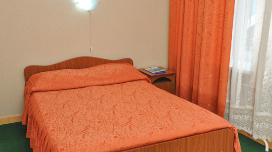 Номер со всеми удобствами рассчитан на одного человека, площадь 9-12 кв. м., совмещенный санузел с ванной. Есть спутниковое кабельное телевидение.